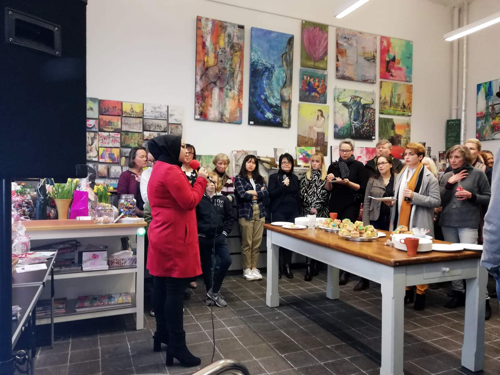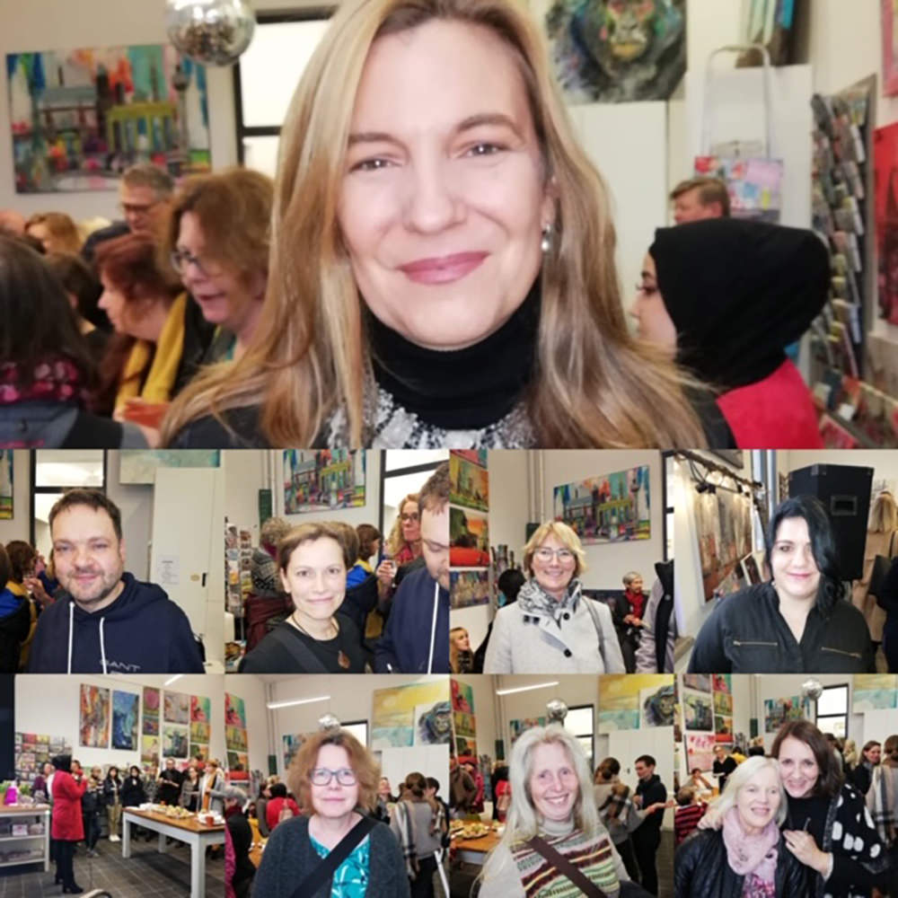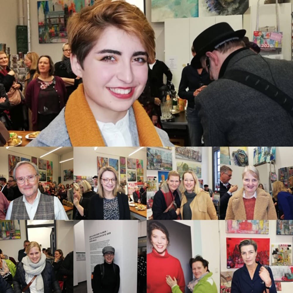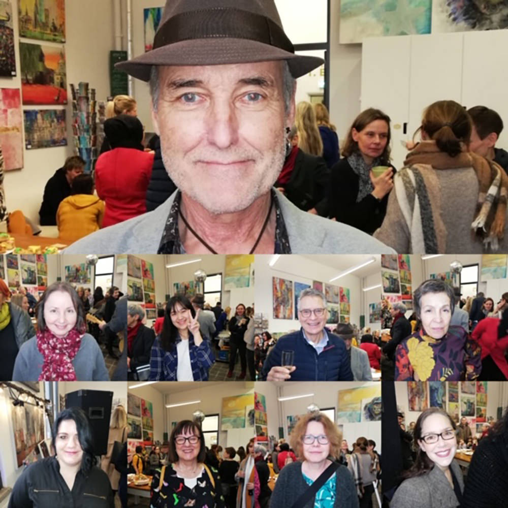Zur Eröffnung am 02.02.2020 kamen über 100 Besucher und bei Live-Musik von Ben Boles, Musik vom Plattenteller von Timmo LaBouche, Lesung von Huda Said konnten sie die Kunsttorte von Davina Dähn genießen und sich in Ruhe meine Gemälde anschauen.