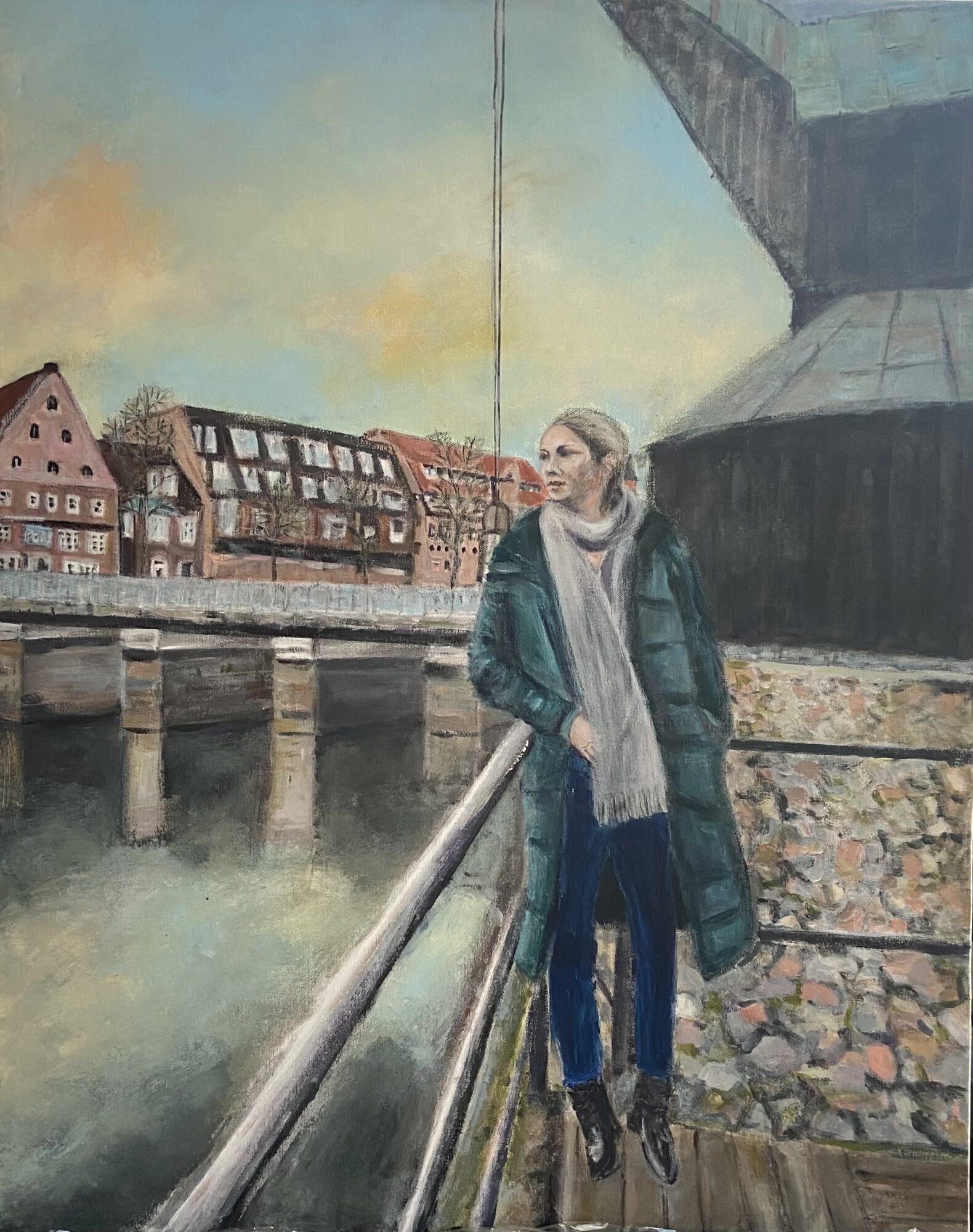 Das elfte von insgesamt zwölf Gemälden meiner Serie „Lüneburgerinnen in Lüneburg“ ist fertig! Es zeigt die Schauspielerin Jelena Mitschke vor dem Alten Kran in Lüneburg. Vorlage war, wie bei allen Gemälden dieser Serie, ein Foto. Jelena stellte es mir freundlicherweise zur Verfügung.