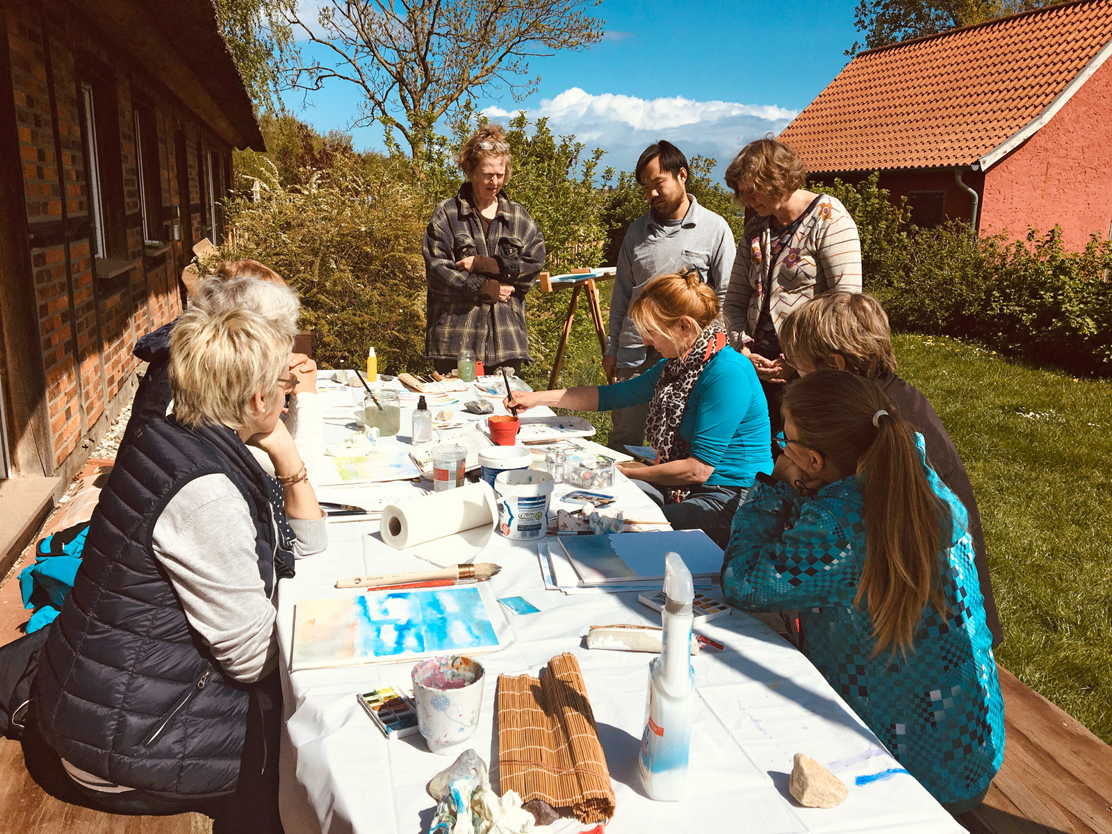 Bei dieser Malreise vom 05. bis 11.05.2019 auf die schöne Insel Poel haben die Künstlerin Anke Gruss und ich zu einem kreativen Abenteuer der besonderen Art eingeladen. Wir stellten den Teilnehmern dort zwei unterschiedliche künstlerische Arbeitsweisen vor, die aufeinander aufbauen. Vom ersten skizzieren in freier Natur am Ostseestrand mit Bleistift, Fineliner und Aquarell über eine geplante Aquarellzeichnung bis zum intuitiven, freien Farbfluss im Acryl sind wunderschöne Bilder entstanden.