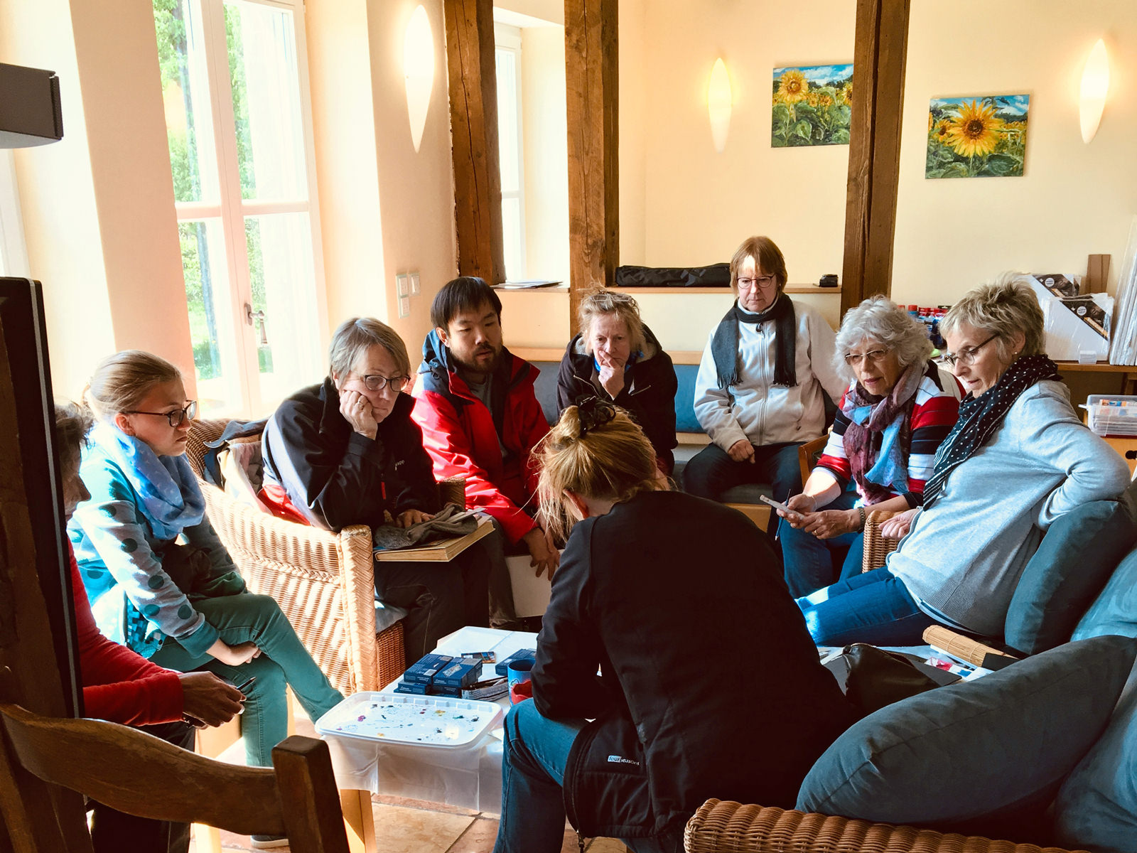 Wir boten ein Aus vom Alltag in wunderschöner Atmosphäre und dies in einem Luxus-Reetdachhaus direkt am Wasser – mit allem erdenklichen Komfort und mit Genuß, denn auch kulinarisch haben wir die Malenden verwöhnt.