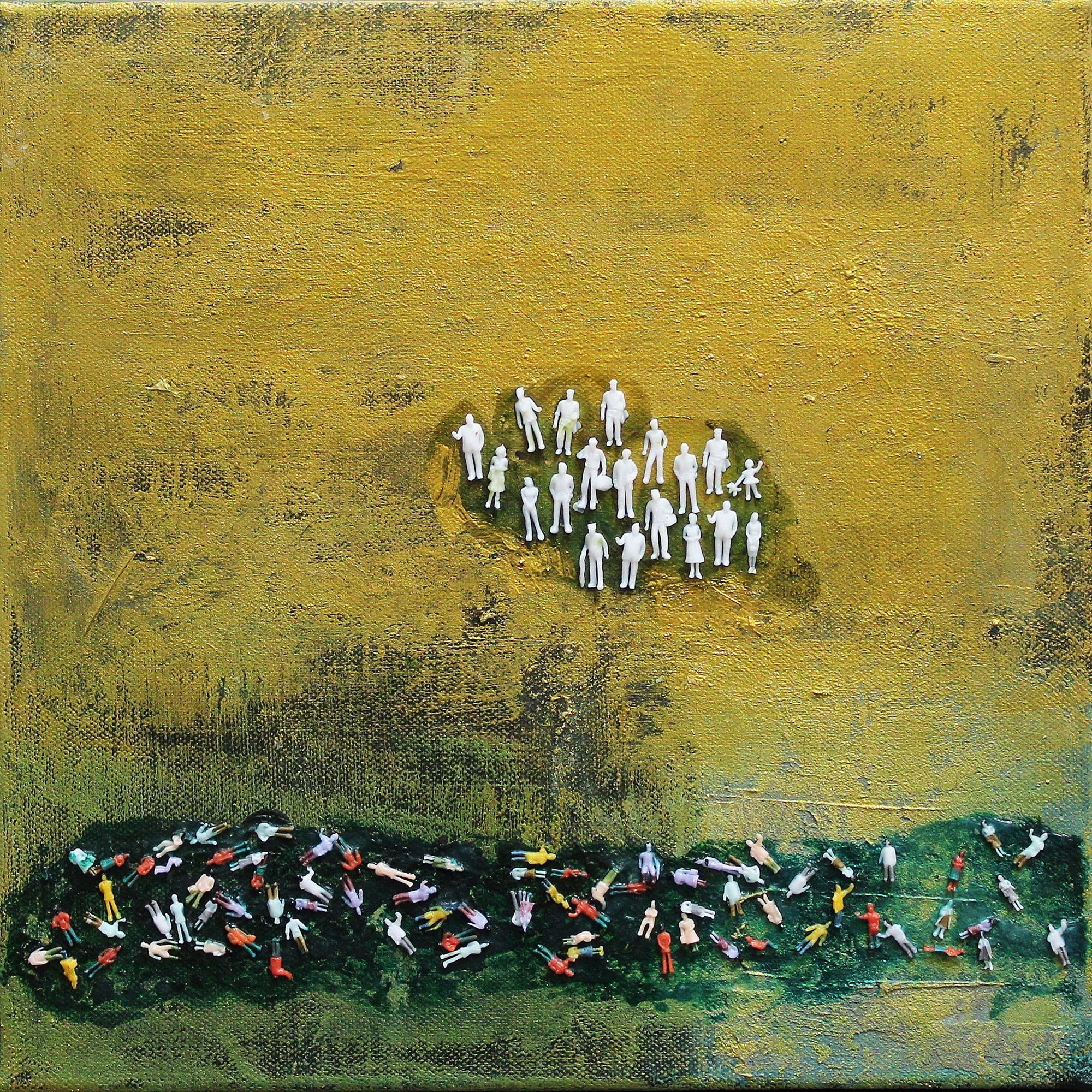 Zwanzig Prozent auf der Überholspur (2020), 30 x 30 cm, Karin Greife Acryl auf Leinwand mit Installation, für E. Lueders, Fotos des Werkes: SF Kategorien: Aktuelle Gemälde, Gemälde Abstrakt, Gemälde Menschen