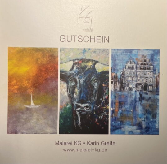 Wert-Gutschein, einzulösen bei Karin Greife in Atelier 1 in der Kulturbäckerei Lüneburg (nach vorheriger Terminabsprache) oder hier im Online-Shop (mit Angabe der Gutschein-Nummer). Gern wird der Gutschein auch für die Malkurse verwendet. So kann man einen (gemeinsamen) kreativen Tag verschenken.