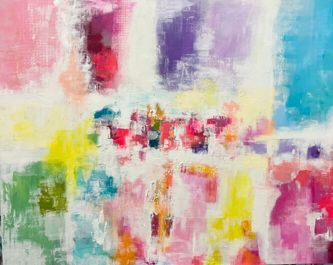 Abstrakte Impression in fröhlichen Faerben. Als Kunstdruck ausdrucksstark in den Farben und beispielsweise passend für Wohnzimmer, Hotels, Meeting-Räume.