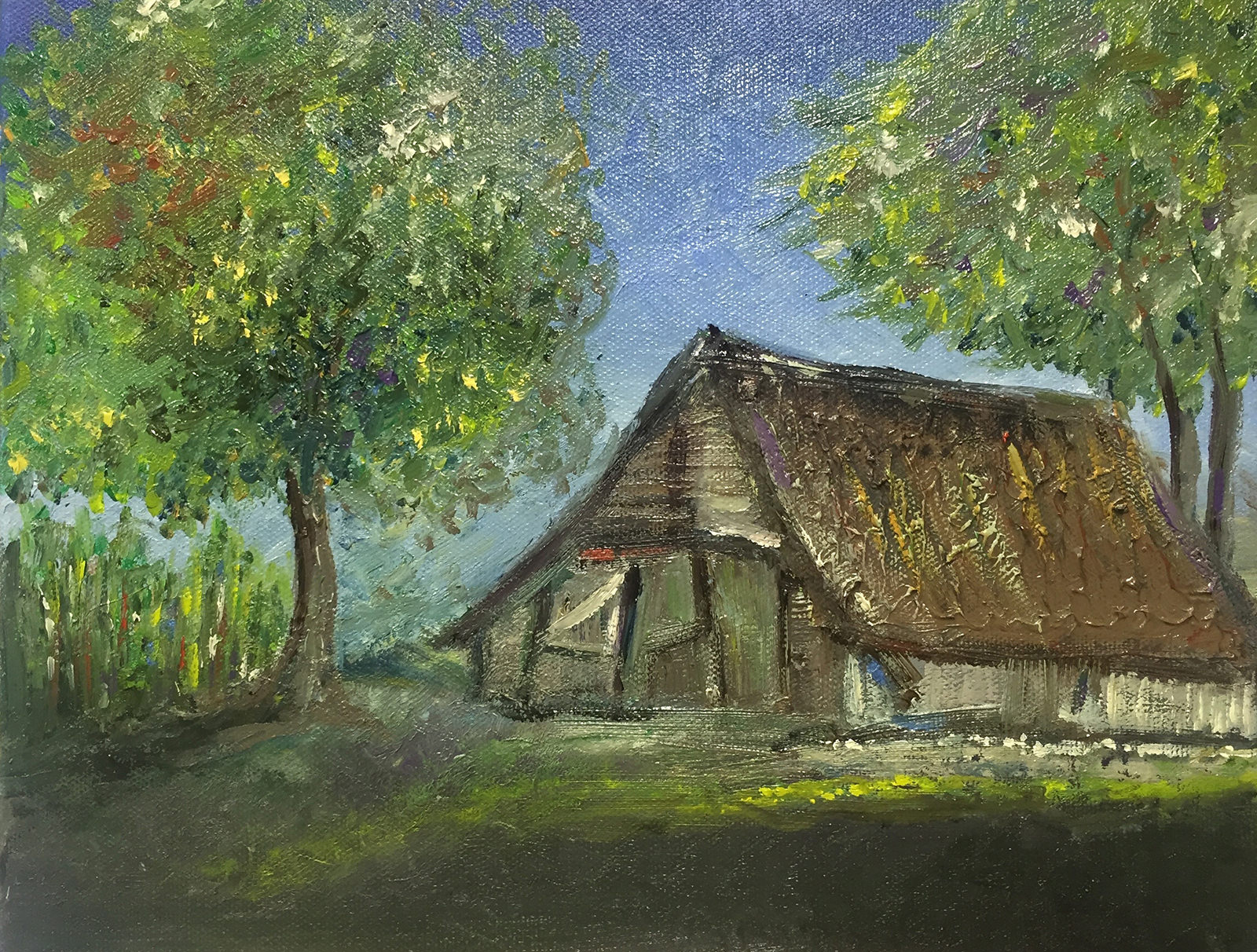 Heide Reetdachhaus (2016) 30 x 20 cm Öl von Karin Greife für Rote Rosen